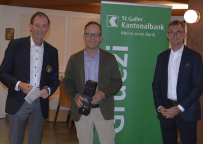 Der Final Men’s Day am Freitag, 17. Oktober kann einmal mehr die SGKB mit Roland Ledergerber (VR Präsident) als überaus grosszügigen Sponsoren begrüssen. Ein ganz grosses Dankeschön! 60 OSGC Men’s mit den geladenen Gästen spielen bei gutem Herbstwetter das letzte Turnier im Men’s Kalender 2025. Noch einmal mit Freunden und Gleichgesinnten zu einer Golfrunde abschlagen, den Alltag beiseite schieben, gute Gespräche führen und delikates aus Küche und Weinkeller geniessen
