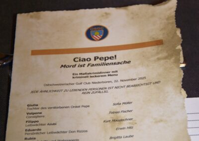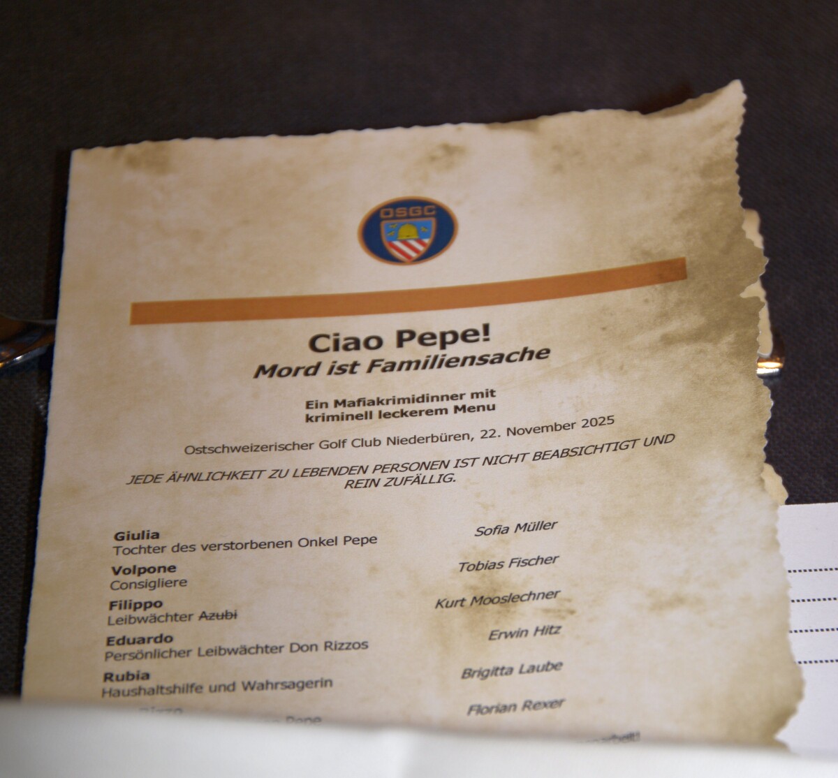 Ein Mafiakrimidinner unter der Regie von Florian Rexer mit kriminell leckerem Menu fesslt die Gäste am Samstag, 22. November. Dieses spannende Tatortdinner wird von sechs Schauspieler/Innen vorgetragen. Ein fantastischer Abend für unsere Clubmitglieder und deren Gäste. Schön waren Sie dabei!